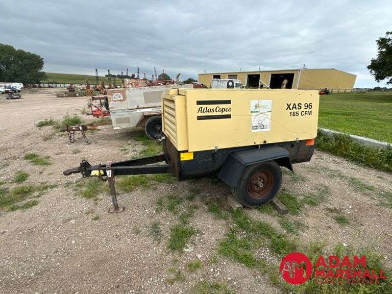 85HP, John Deere 4.5L 4-Cylinder Diesel Engine, Shows 3,684 Hours, 185CFM, 116 Max PSI, Ball Coupler, Jack, Single Axle, Steel Wheels, 205/75R14 Tires, No Title, CK1852