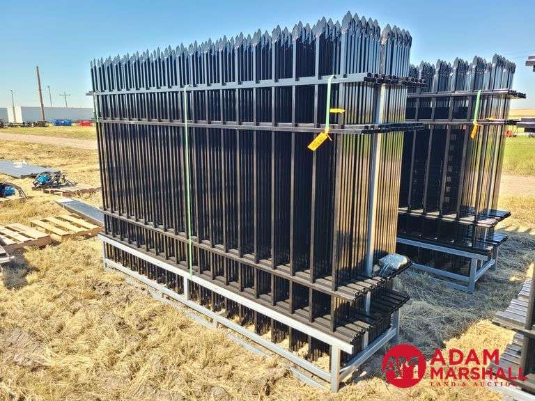 LOT 4636 - Wrought Iron Site Fence (22) Pieces w/ (23) Fence Posts, 7FTx10FT Long