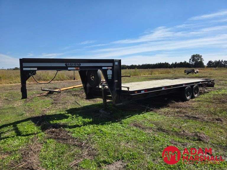 102IN Wide x 24FT Long, Steel Frame, Wood Deck, 7K Torsion Axles, Pull Out Ramps, Adjustable Dovetail Platform, 7 Pin Plug, Electric Brakes, 235/85R16 Tires, Title Pending, JB1051