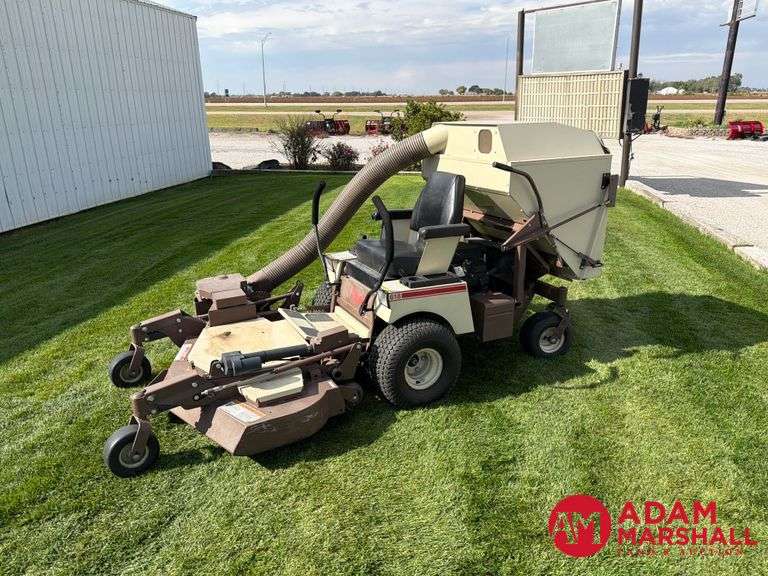 18HP, Kohler Command 18 OHV Gasoline Engine, Shows 570 Hours, Hydrostatic Transmission, Power Fold 52IN Cutting Deck, Blower Assist W/ Rear Model 15 Manual Dump Bagger, 9 X 3.50-4 Front Tires, 20 X 10.00-8 Drive Tires, 13 X 6.50-6 Rear Tires, CK2200