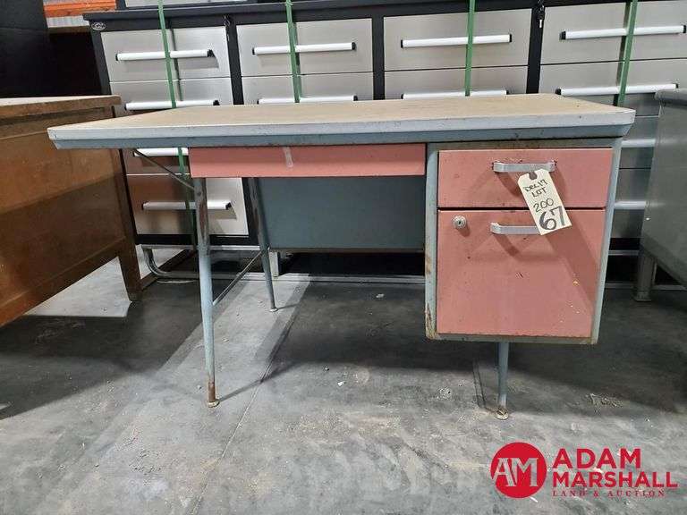 LOT 20067 - Three Drawer, Wood Laminate Top, Metal Desk