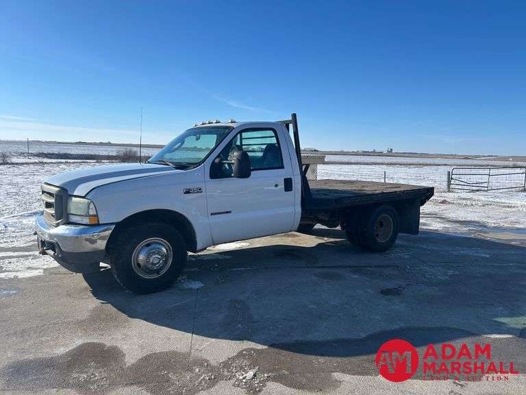 2WD, 6.0L Diesel Engine, Automatic Transmission, Shows 286,607 Miles, AC/Heat. Crank Windows, Radio, Seat Covers, Gooseneck Hitch, Receiver Hitch, 245/75/R16 Tires, Duals, 8FT Wide x 9FT Long Flatbed, Tool Box, Clean Title, JC400