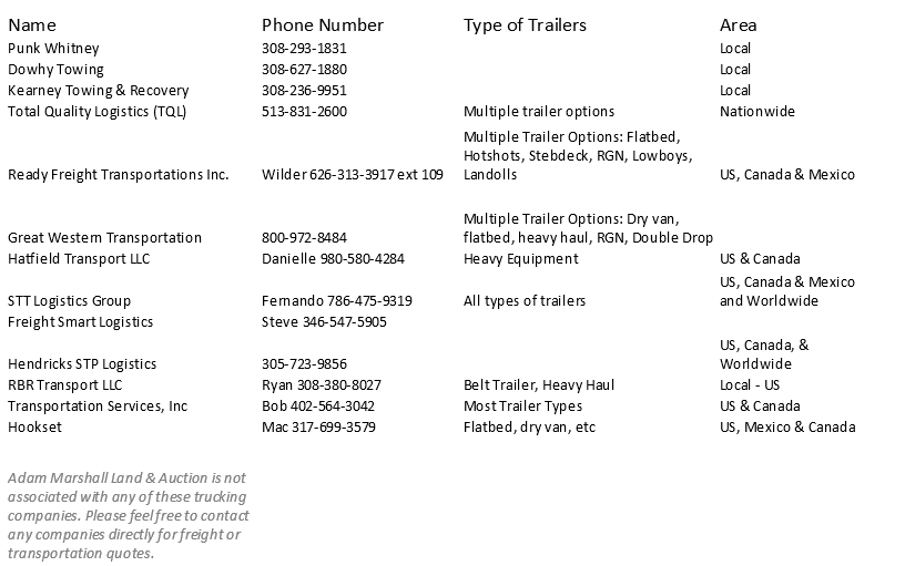 Items will be located throughout the State of Nebraska, Kansas & Colorado. Some items may be located at our auction yard as well. See each item for it's location.