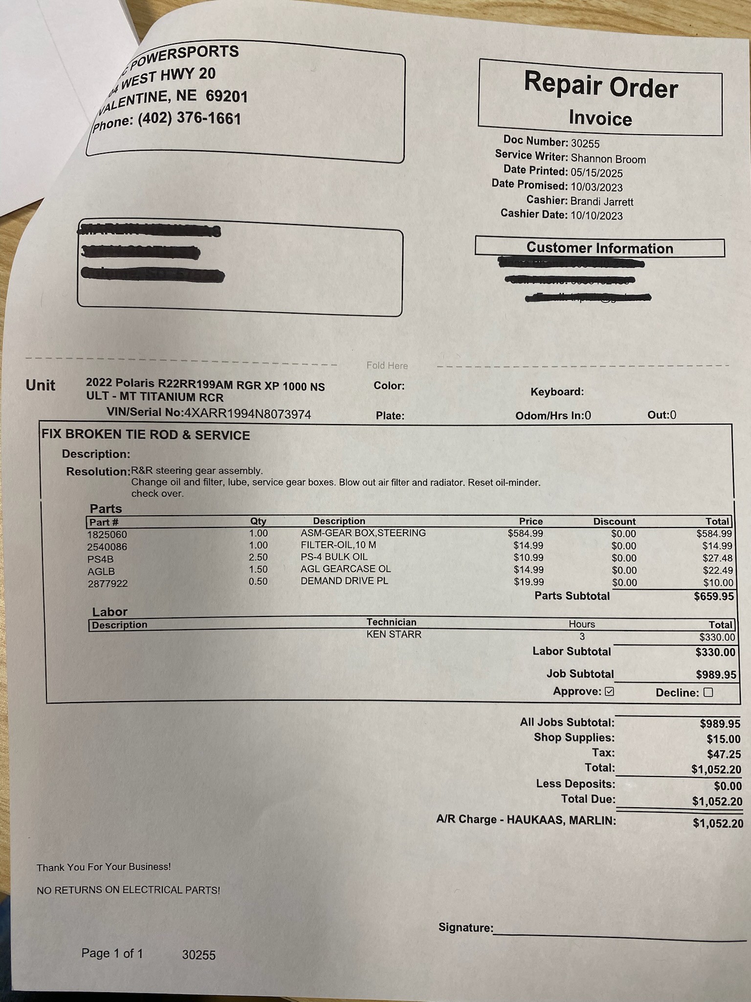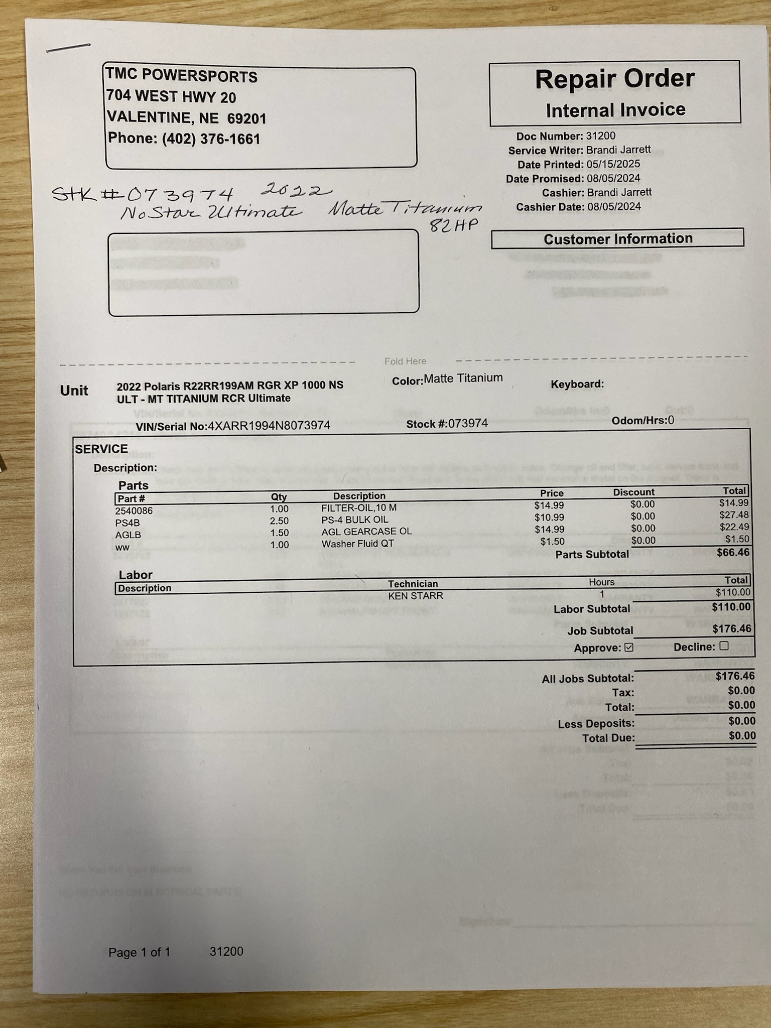 - If you have any questions on any of the items, please contact TMC Powersports (402) 376-3846 or 402) 376-1661 or one of our Adam Marshall Land & Auction field representatives; Josh Blakeman (308) 870-3813 or David Rasmussen (402) 480-3809.