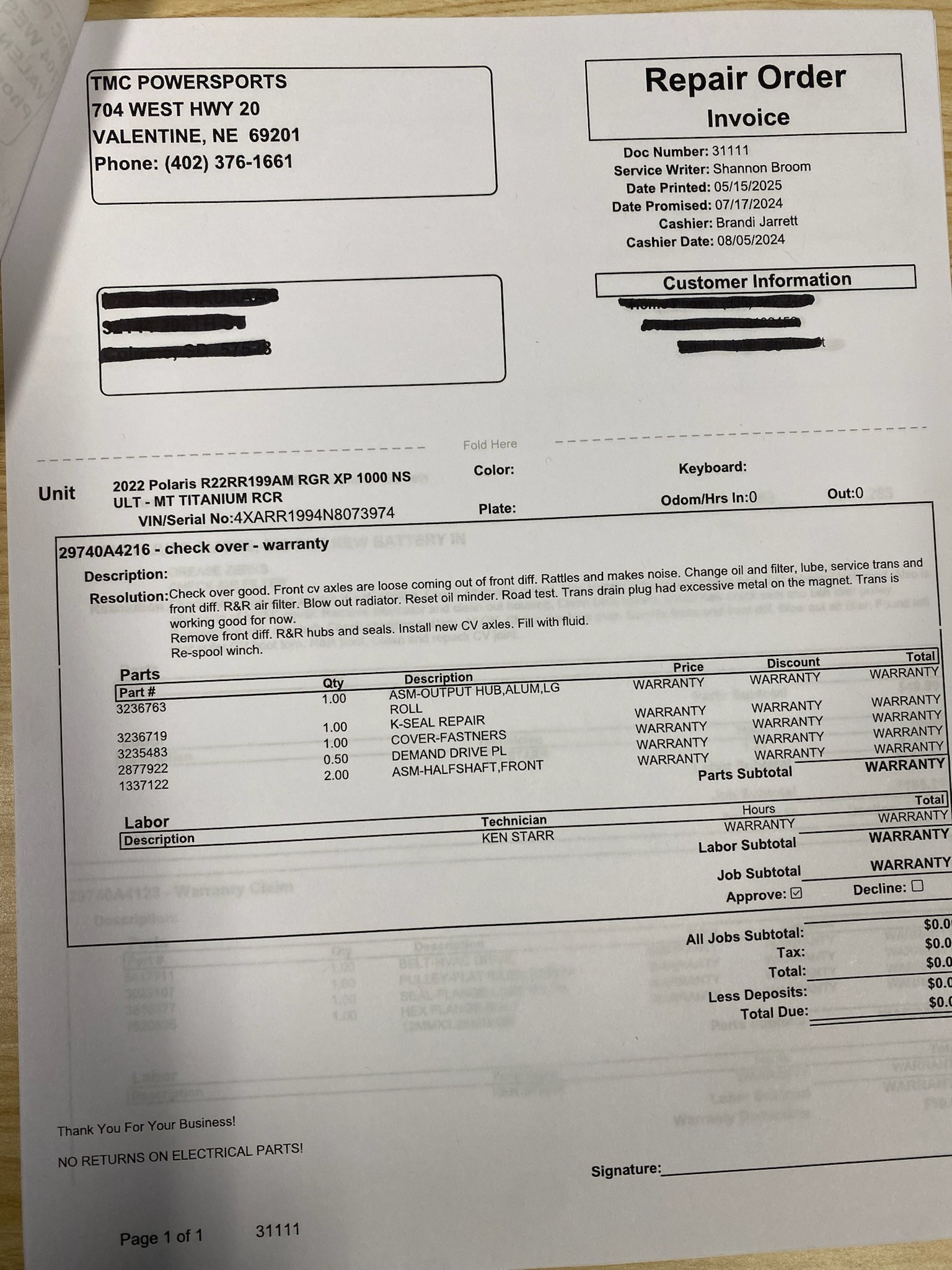 Items will be located in Valentine, Nebraska at TMC Powersports.